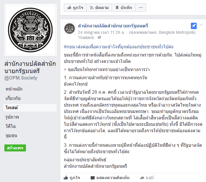 随着7月28日十世皇诞辰的到来,泰国官方发布了参与仪式着装要求,巴育总理称,这是一个极其隆重、又充满福泽的时刻,希望泰国人民能参与这个盛大的庆典,向国王表达作为国民的忠诚之心,在国王寿辰之际颂赞陛下圣德,为诗丽吉王后祈福,也为九世王普密蓬国王献上怀念与哀思。