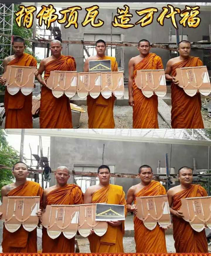 无物高于佛,佛顶有瓦遮,捐瓦功德为佛遮风挡雨,捐者比一般善行更是功高一筹,受佛光普照,旺家宅子孙,给佛加瓦即给自家添砖加瓦,保后代天资福祉皆有。