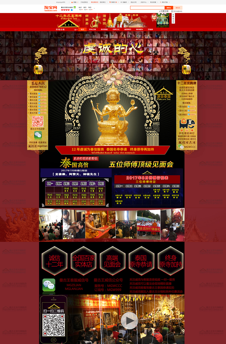 曼古王官方企业店淘宝店于2017年7月1日投入运营,曼古王将淘宝平台视为新的宣传推广媒介,贡金与线下实体店保持一致,在淘宝店中善信们可以恭请佛牌圣物,预约泰国刺符项目,预约师傅团项目,其中泰国刺符可享受9元拍免200元针头费【每月限量38个名额,先到先得,刺每个ID限购1个,须本人使用】,以及优先预约权。