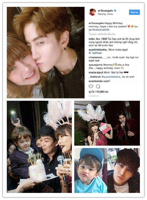 近日, 泰国当红一线男星Mike,因母亲生日举办了派对,身为儿子的他,虽然人在中国拍戏无法抽身回去庆祝,但也不忘以实际行动給妈妈送孝心—‘爱的支票’100万泰铢。除了在个人IG上发了和妈妈的合照以及祝福,还派可爱的儿子Maxwell在生日派对上給奶奶献吻。Maxwell身着帅气西装,派对现场逗得奶奶非常开心。