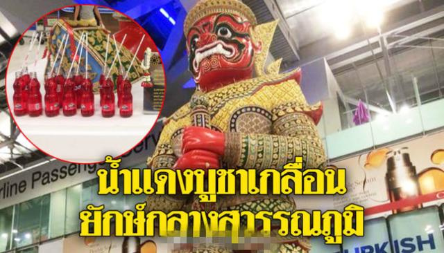 12月4日,泰国素万那普机场里内的一座桃威素湾神像下,被莫名的游客当成把成了寺庙,在桃威素湾神像下摆放了20多瓶红色饮料,那场景犹如在泰国寺庙供奉或还愿似的,让路过看到这一幕的群众一脸黑人问号,相关工作人员表示:下一步他们将在新闻发布会上通告大家这尊神像不是给大家拜的,不要做出此类不恰当行为。