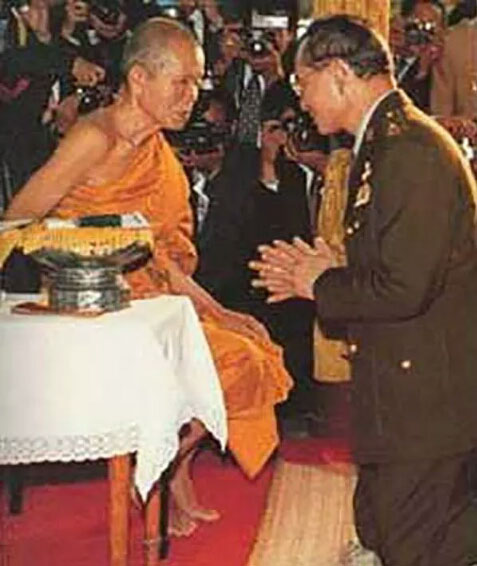 的龙婆坤大师,是泰国最有名的“扑头罗汉”,也被赞誉为“活财神”、“蹲神”。在泰国信众最多,威望最高,就连泰国国王见到他也会下跪,求他扑一下头,或吐一口口水,让其为之祈福。龙婆坤活佛后来因年事已高,身体欠恙,多次住院治疗无果,于佛历2558年(公历2015年)5月15日离我们而去了,传说中成为了仙佛。