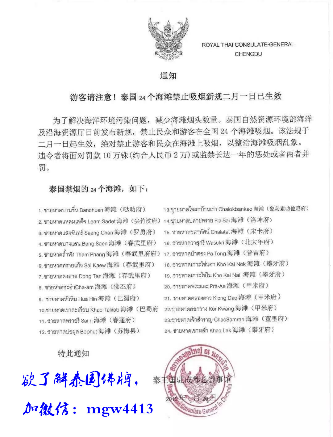 此为泰国史上最严禁令。从2月1日起,泰国24个海滩禁止吸烟,吸烟罚款10万,监禁一年!去泰国旅游的朋友也不要太担心了,其实香烟在泰国是合法的,只是不可以在公共场合吸烟。
