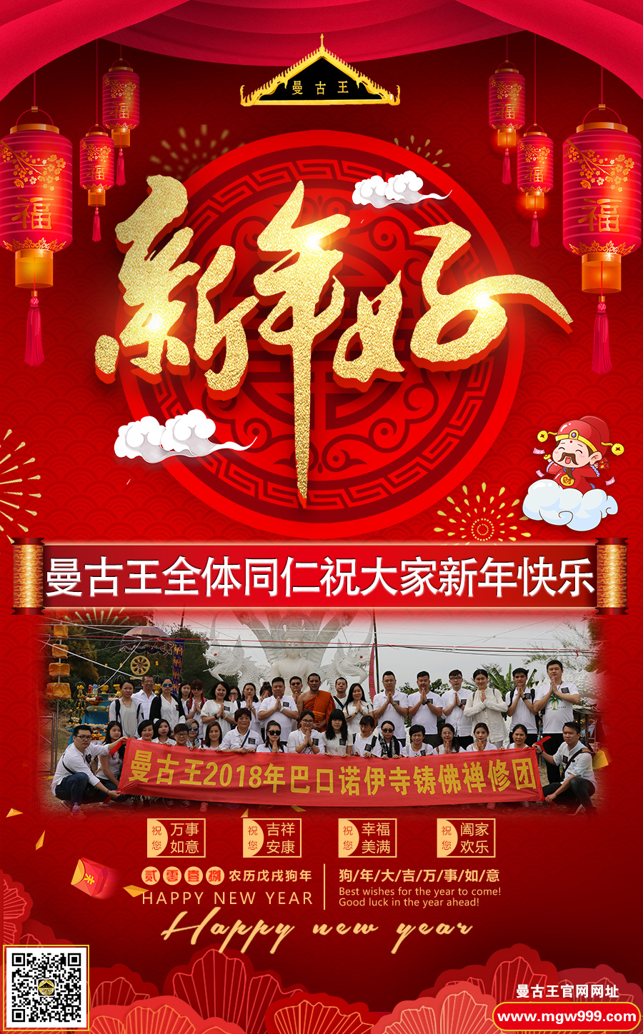 随着农历新年的脚步越来越近,全国处处都洋溢着节日喜庆的气氛,在此曼古王全体同仁,提前祝善信新年快乐,万事如意,梦想成真,事业辉煌,年年有好运,岁岁有今朝!