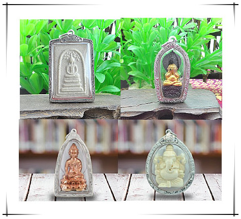 制作佛牌的材料千奇百怪,有普通的粉牌,金属牌,有特殊之地的象牙牌,红木牌,珊瑚牌,石玉牌,甚至还有兽牙兽骨牌,及人骨牌等等。市面流通最广的还是粉牌,这可不是一般的泥土烧制,大部分的粉牌都是由僧人收集各种各样的吉祥物质,最终合成而来。主要的混合物来自庙里,如用过的香灰,清扫大佛后的尘土,经粉,庙里植物的花叶,念经得来的舍利,破损的旧佛牌等等。把这些物质重新搅碎,加混合剂后重新在模子中压制成新的佛牌。