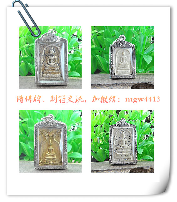 另外,最早期的佛牌基本都是没有颜色的,或者因质地不同产生天然的颜色,白色居多。近现代的佛牌,为了适应佩戴者的美观需要,逐渐产生了染色,彩绘,加贴等装饰手段,但这对佛牌的效力并没有什么影响。